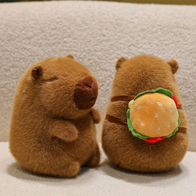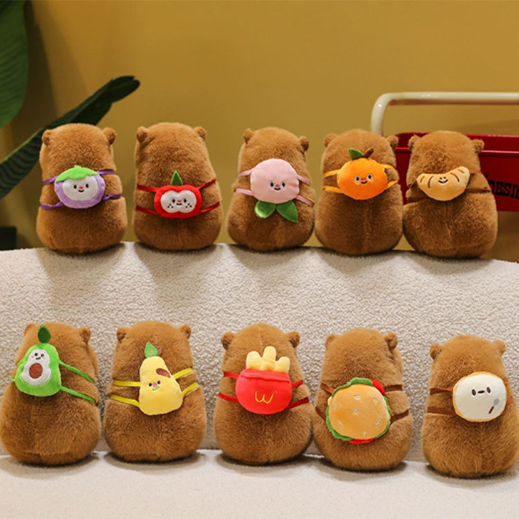 Ennek az aranyos Capybara plüss babának a Capybara megjelenése van. A sorozat összes szereplője hátizsák alakú, és minden Capybara más hátizsákot hordoz. Néhány Capybara hamburgert hordoz a hátán, mások padlizsánot hordoznak, mások almát hordoznak, mások sült krumplit hordoznak, és vannak körte és narancs is. Van mindenféle capybara, és mindegyik nagyon aranyos. A hátizsákjaik levehetők, és összesen 10 különböző stílus van. És minden kis hátizsák nagyon finom.