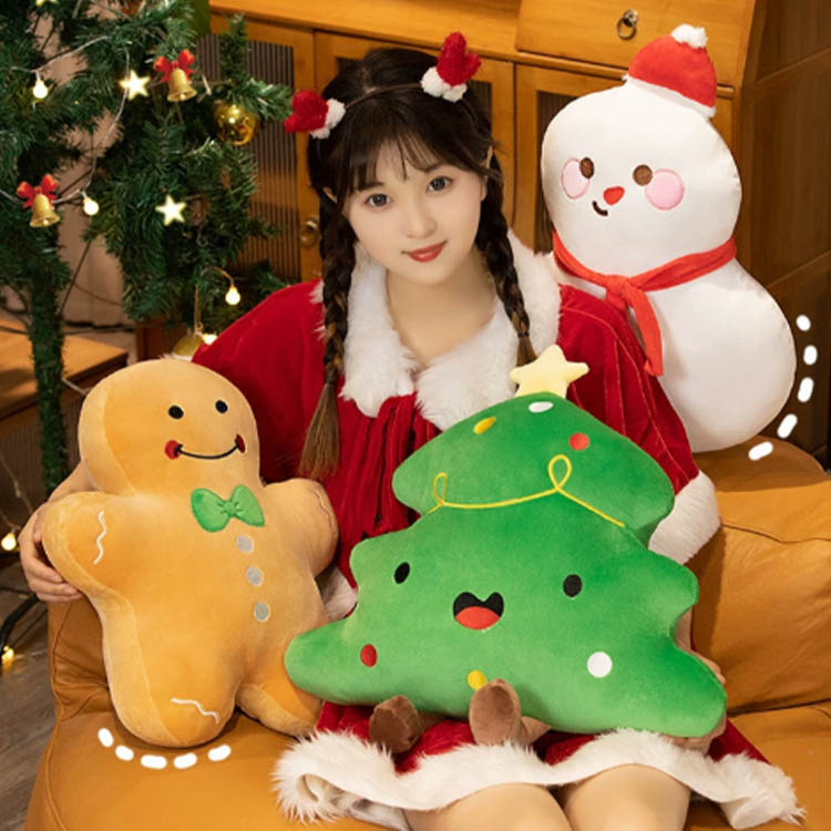 Ez a plüssjáték karácsonyi stílusú. A stílusok nagyon népszerűek, köztük a mézeskalács plüssjátékok, a kis hóemberek és a karácsonyfák. A szöveteik mind plüssből készültek, és belül PP pamuttal vannak kitöltve. Nemcsak szép megjelenésűek és szobadíszítésre alkalmasak, de díszpárnaként, párnaként is használhatók, ami nagyon praktikus.