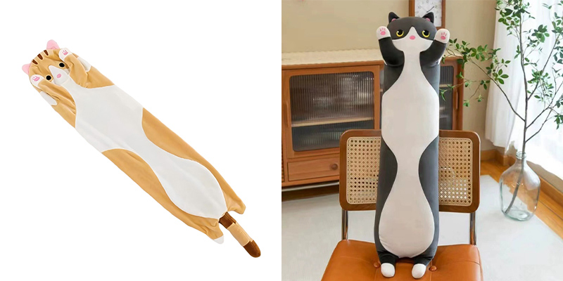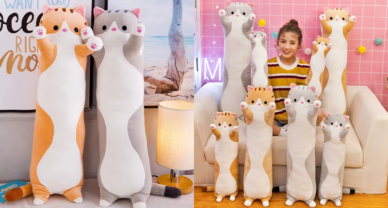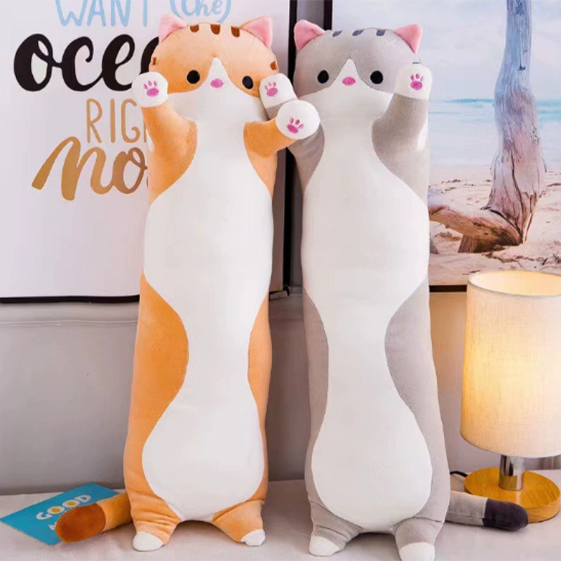 Ahosszú macska plüss test párnaAranyos megjelenés és gyakorlati funkciókkal rendelkezik. Ez egyben plüss játék és párna.